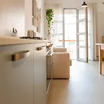 This apartment includes a balcony, a terrace, and a living room with air conditioning and a washing machine for utmost comfort.